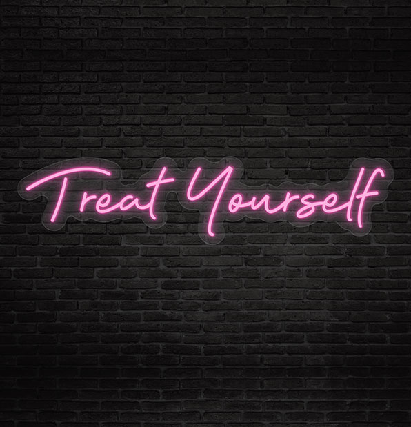 Illuminate your personal relaxation space with the comforting light of the "Treat Yourself LED Neon Sign," reminding you to prioritize self-indulgence and rejuvenation. -